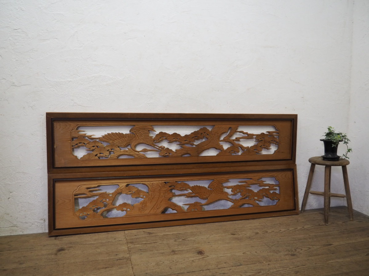 商品情報 | ■商品詳細■ レトロな古い木製欄間、2枚セットです。 長年使い込まれた味わいのある品です。 一般のご家庭はもちろん、レトロな店舗什器にもお勧めです。 経年の傷や欠け、染み等がありますが、使用には問題ありません。 古い物とご理解いただければ幸いです。 ご不明な点などありましたら、質問欄にてお願いします。 ■サイズ■ 全体(最大値) H 37cm×W 172,5cm×D 3cm H 37cm×W 171,5cm×D 3cm 多少の誤差はご了承下さい。 |