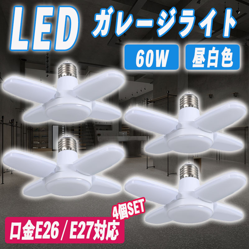 LED ガレージライト 4個セット シーリングライト E26 蛍光灯 作業灯 照明器具 昼白色 天井照明 ペンダントライト 5灯式 倉庫 車庫 防犯 駐車場