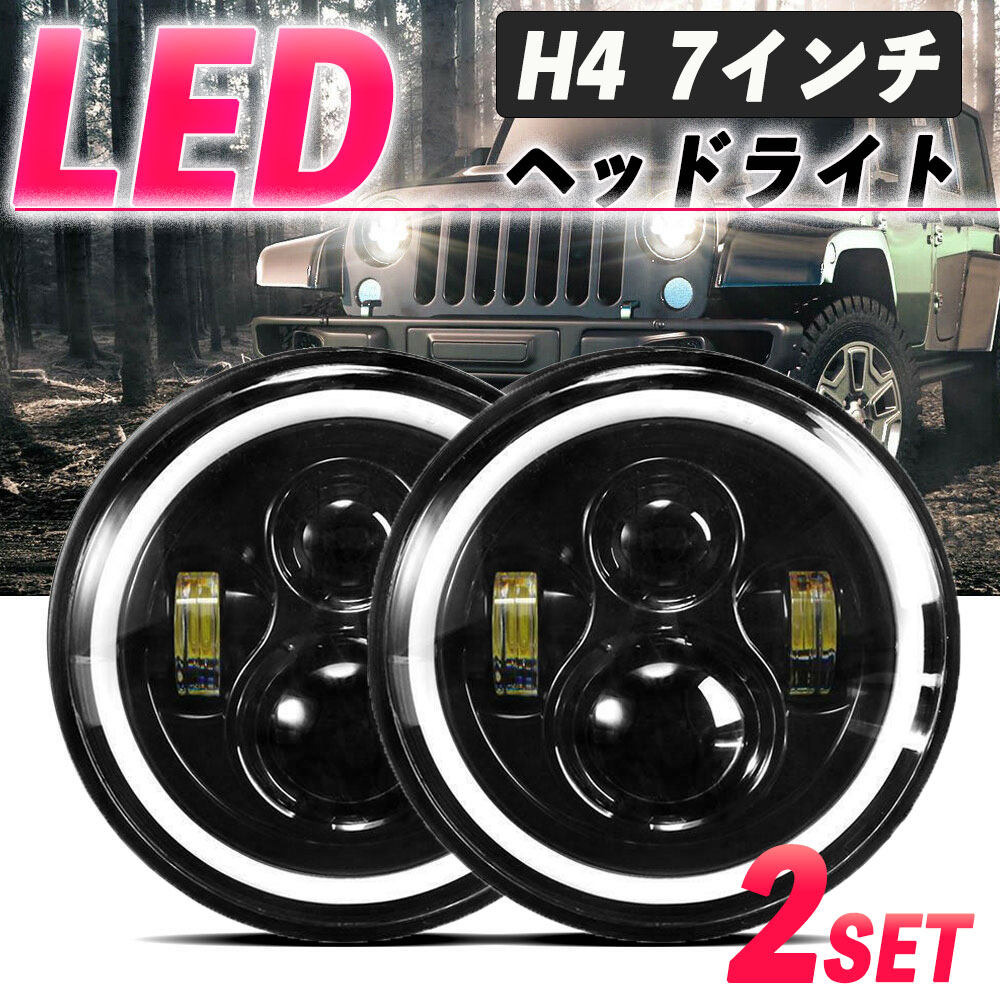H4 LED 7インチ 2個セット ヘッドライト イカリング デイライト プロジェクター 8000lm ホワイト アンバー ウインカー ジムニー ランクル JEEP