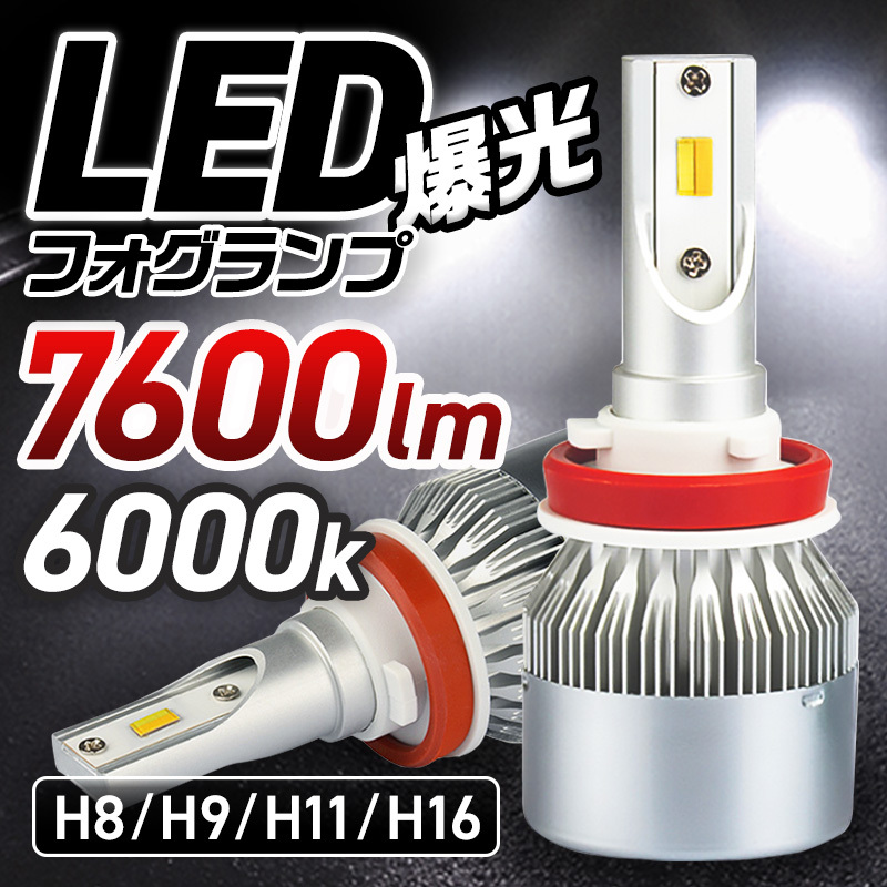 LEDバルブ ホワイト フォグランプ ヘッドライト 7600lm 6000K 3800lm H8 H9 H11 H16 白 車検対応