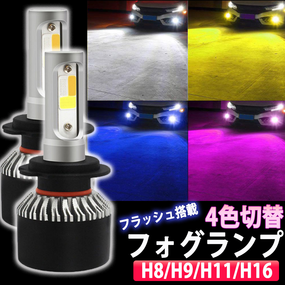 4色 切り替え 5パターン LED フォグランプ ヘッドライト H8 H9 H11 H16 ホワイト イエロー ブルー ピンクパープル ストロボ 6000K 3000K 8000K 3800lm 7600lm