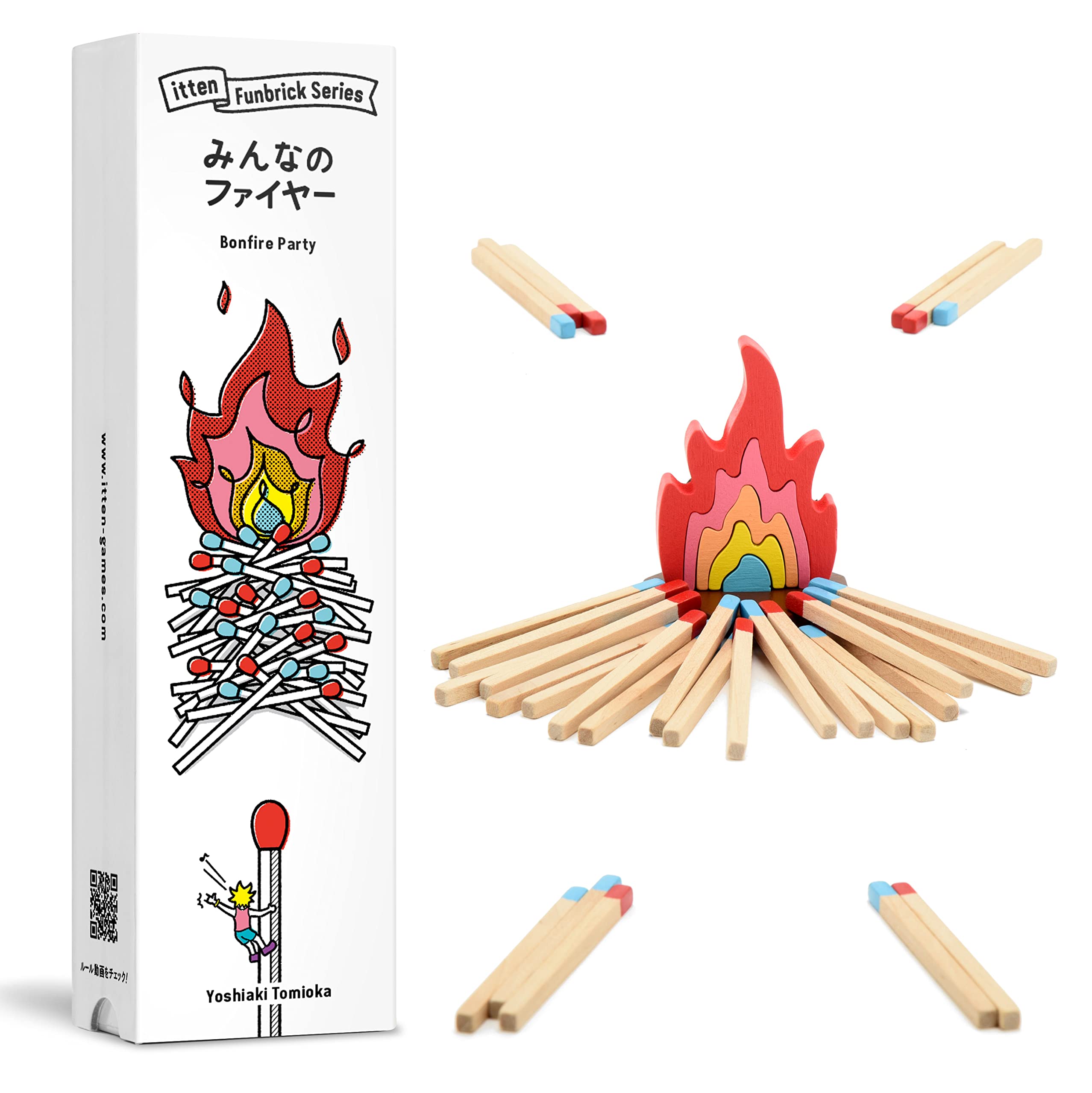 「せーの、ファイヤー!」でマッチを出しあって、炎を育てる協力ゲームです。 お互いを気にかけ、心を一つにして炎を大きくしていきます。 見た目も楽しく簡単ルールで盛り上がるので、 パーティーやゲーム会のアイスブレークにもオススメ、 すぐに場を暖めてくれること請け合いです! 『ファンブリックシリーズ』は、ittenのゲームシリーズです。 スリムでポータブルな箱をスライドすれば、 いつでもどこでも気軽にゲームを始められます。 国内外のゲームデザイナーによる、個性的なゲームをラインナップしています。 アナログゲームならではの魅力と楽しさを持ち運んでください。