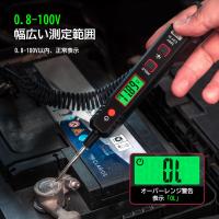 【DC0.8V-100V検電範囲】0.8-100V直流電圧の計測範囲を持つ自動車用回路テスターはオートバイ、軽自動車、トラックなどの車型の電気回路の検査に最適です。最大100VのDC電圧測定が可能で、一般的な自動車用電気テスターの最大電圧60Vを凌駕しています。自動車用ヘッドライト、テールライト、方向指示器回路、ヒューズ接続、その他0.8-100V DC配線および回路の高速測定が可能になります。