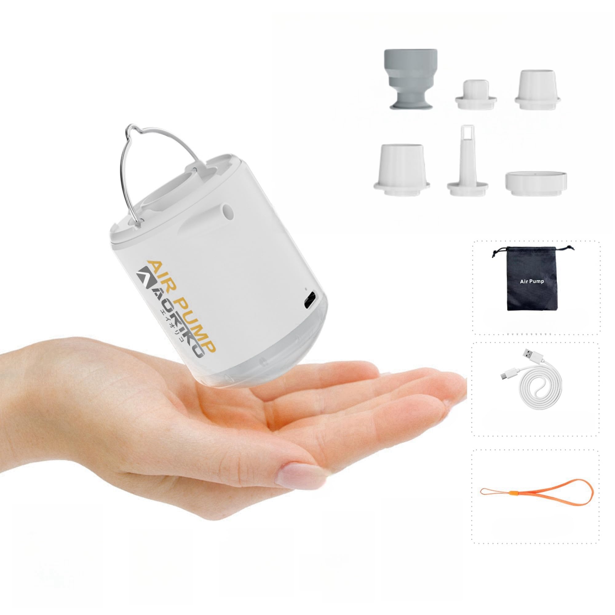 ・超コンパクト・超軽量で手のひらにすっぽり、重さわずか96グラム、風密度200L/分と強力で、バッテリ2000mAH インフレーターマット、ピローなどの空気入れ/空気抜きも対応できます。