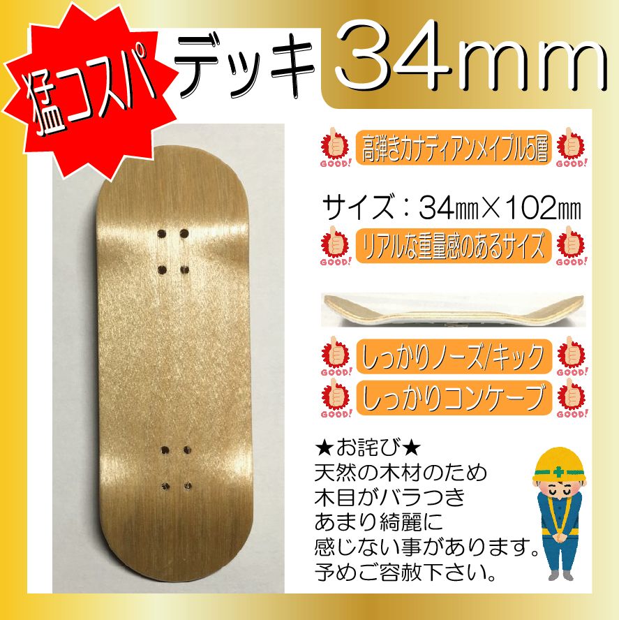 SMBLANKS製 34mm デッキ ナチュラル無地