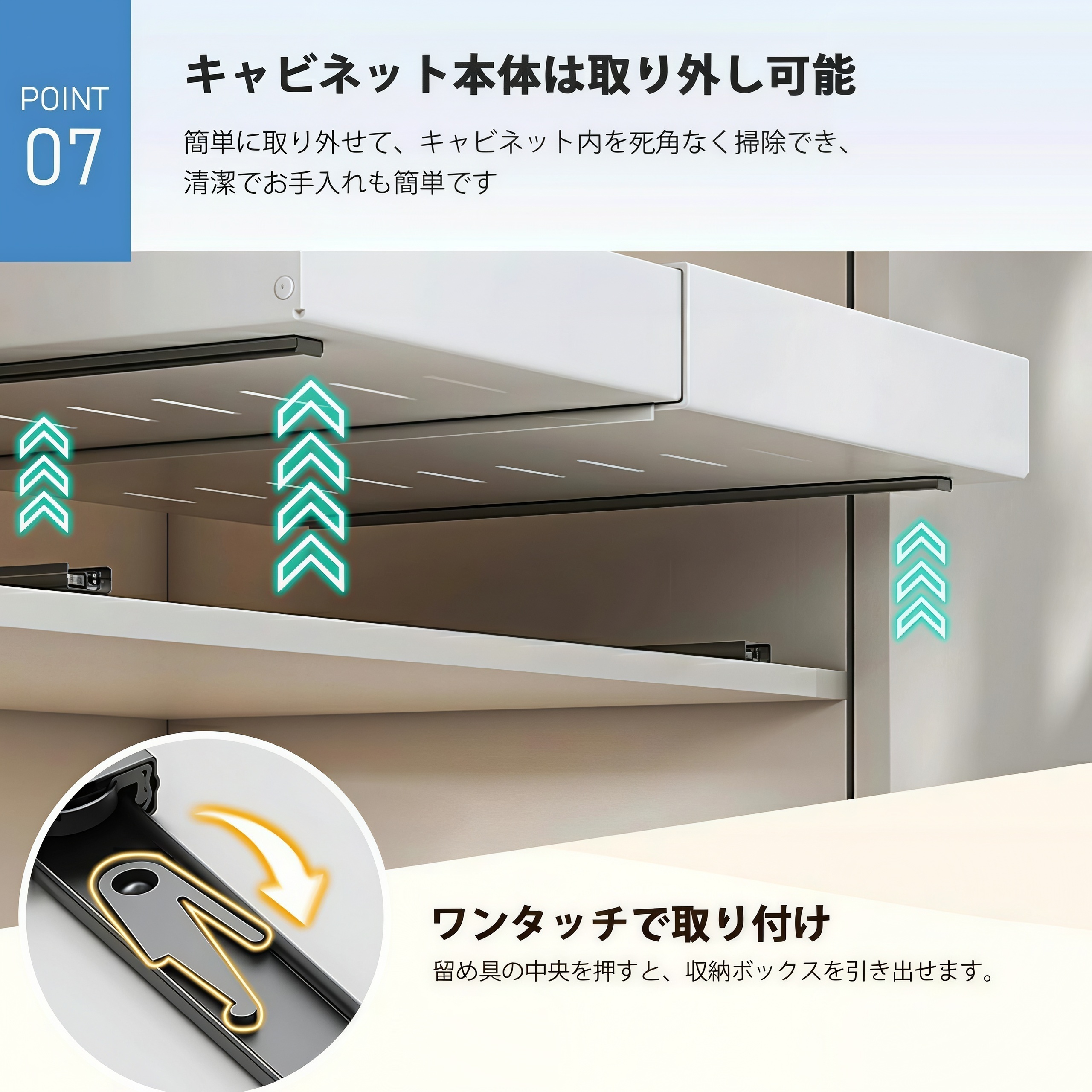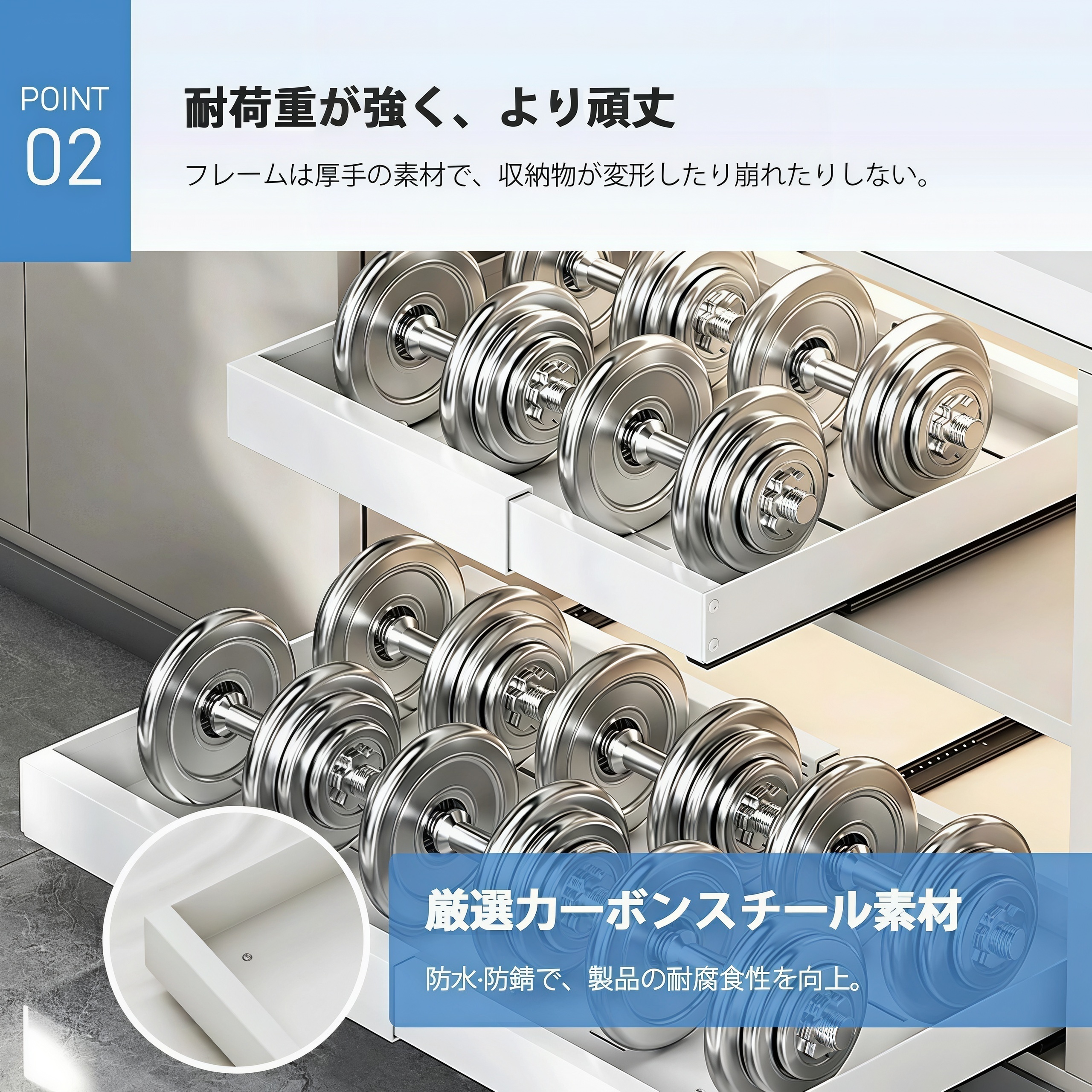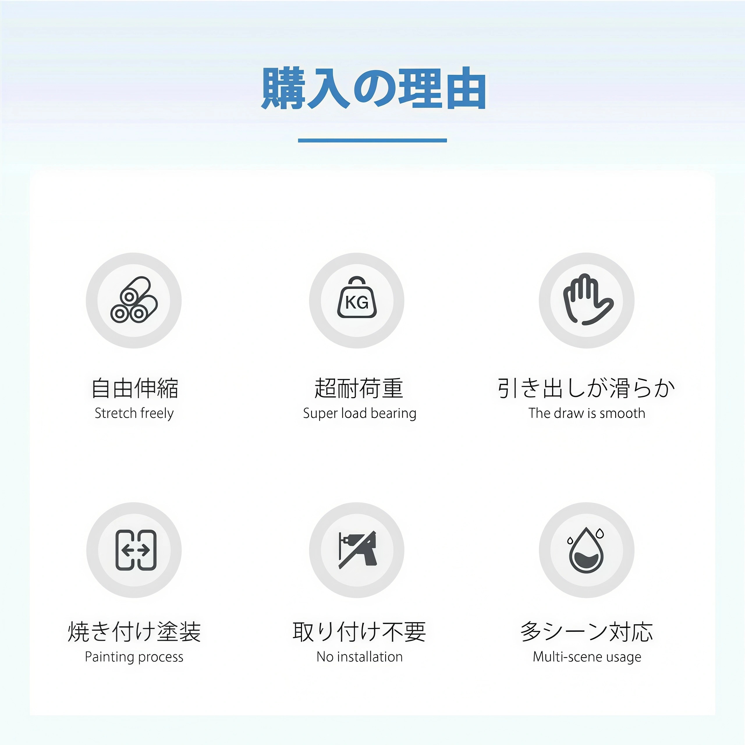 - 静音スライドレール:引き出し時の摩擦音が完全消失!家庭の静けさを守り、滑らかな動きでストレスフリー。