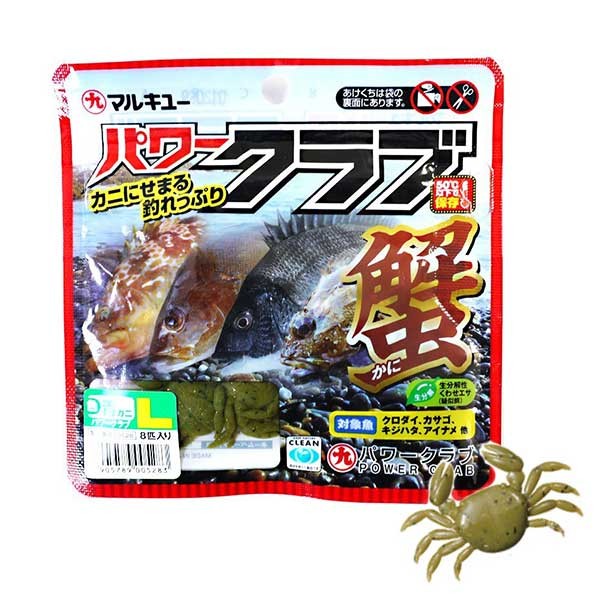 「パワーイソメ」に用いられている素材を使用し、カニを模したフォルムに仕上げました。カニをエサにして釣ることが多いクロダイ・チヌ、カサゴ、キジハタ、アイナメなどに特に効果的。穴釣り、ブッ込み、落とし込み(ヘチ釣り)など様々な釣りに対応し、ブラクリやジグヘッドにつけてもOK。MとLの2つのサイズに青ガニ、赤ガニ、茶ガニと3つのカラーをラインナップしています。