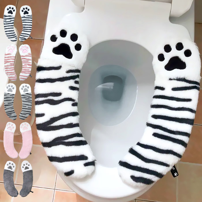 便座カバー o型 u型 厚手 便座シート 洗える ふわふわ ファー マジックテープ トイレ かわいい 猫 肉球 衛生的 掃除 清潔 やわらかい トイレ用品