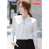リボンブラウス 長袖 スーツ ボウタイブラウス レディース フォーマル 白 オフィス リボン フリル ブラウス おしゃれ 春 夏 秋 冬 長袖シャツ シャツブラウス