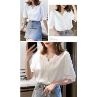 ブラウス レディース 半袖 白 おしゃれ オフィス ブラウス 安い レース 半袖tシャツ シャツ トップス 五分袖 春 夏 着痩せ Vネック 春夏 きれいめ 無地