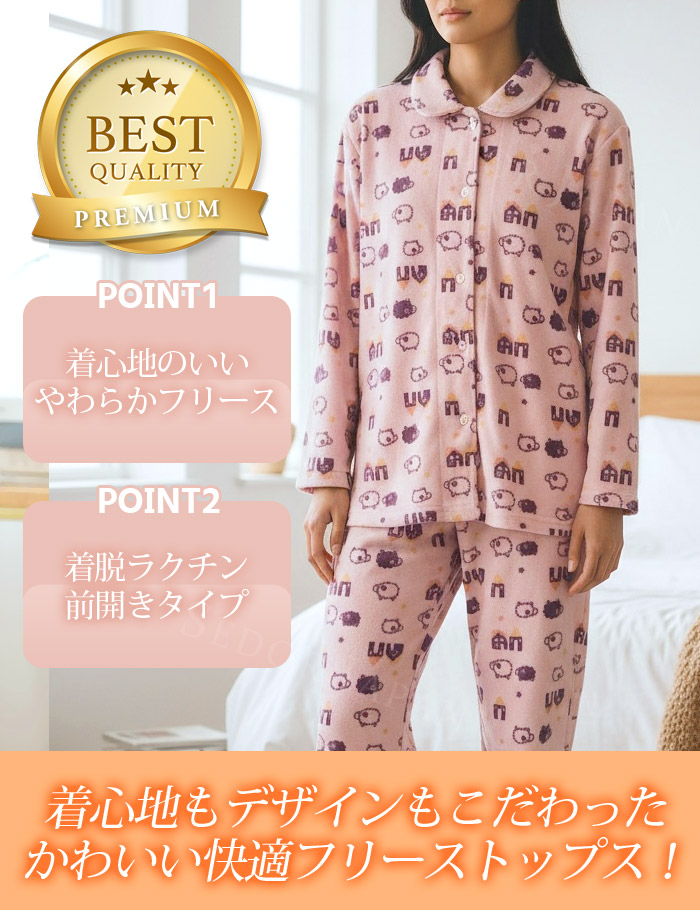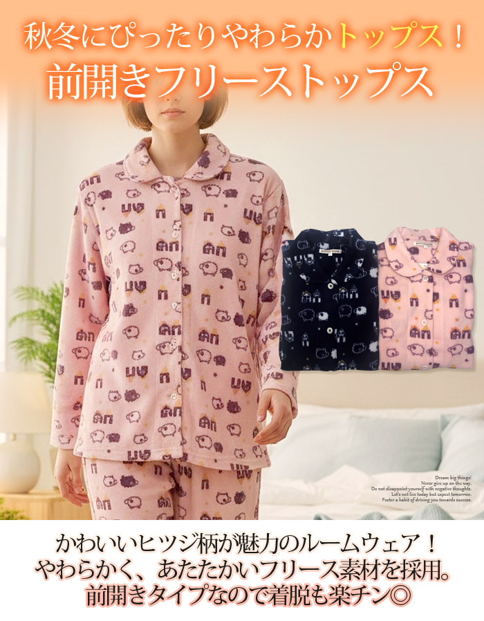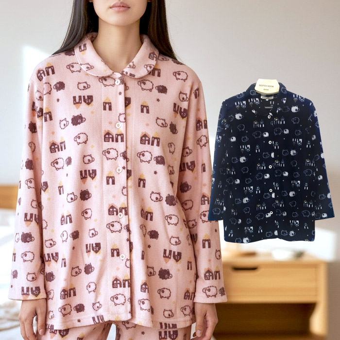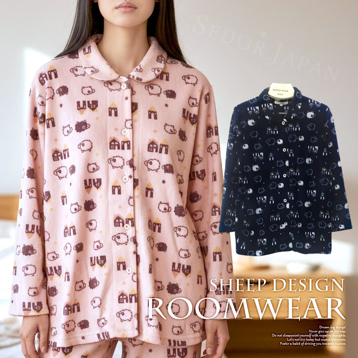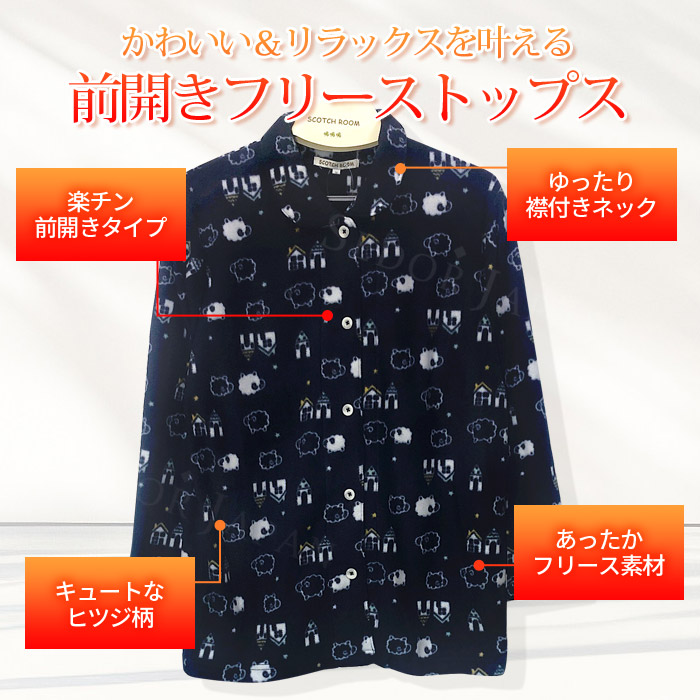 フリース トップス シャツ 前開き あったか ふわふわ ルームトップス ルームウェア パジャマ 部屋着 ボタン 襟付き 羊 ひつじ ヒツジ かわいい 中学生 高校生 学生 可愛い セドールジャパン ポイント消化 セール 送料無料