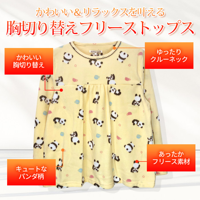 フリース トップス Tシャツ ロンT あったか ふわふわ ルームトップス ルームウェア パジャマ 部屋着 胸切り替え パンダ かわいい 中学生 高校生 学生 可愛い セドールジャパン ポイント消化 セール 送料無料