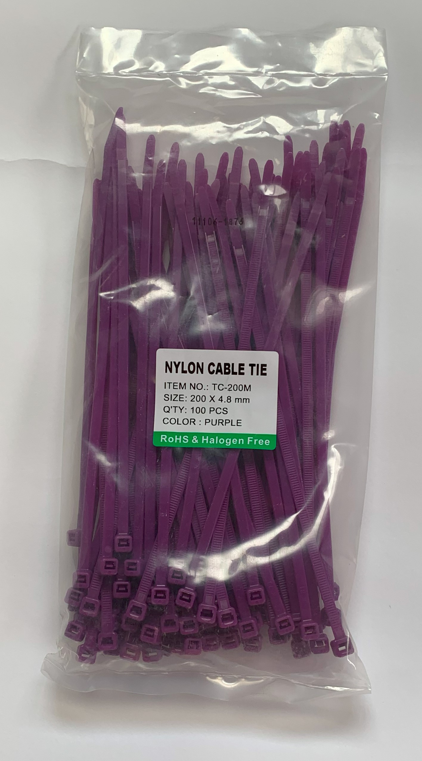 カラー結束バンド 紫 200mm 100本 ケーブルタイ