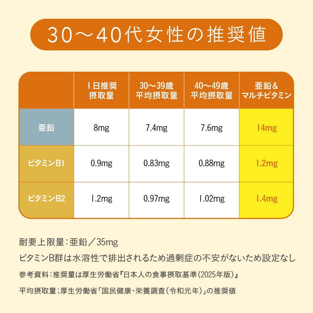 【栄養機能食品】(亜鉛・ビオチン・ビタミンΒ1・ビタミンΒ2・ビタミンΒ6・ビタミンE)