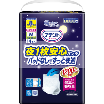 【ケース販売】エリエール アテント 夜1枚安心パンツ パッドなしでずっと快適 Mサイズ 14枚×3個 大王製紙