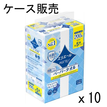 【ケース販売】エリエール ペーパータオル Plus+キレイ コンパクトタイプ 200組×50パック(5パック×10入り) 大王製紙