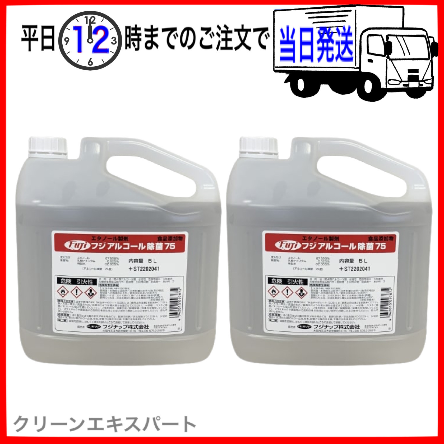 FUJIナップアルコール75 2本 除菌 食品添加物 エタノール製剤 大容量 5L【専用コック付き】【送料無料】(旧フジアルコール75)