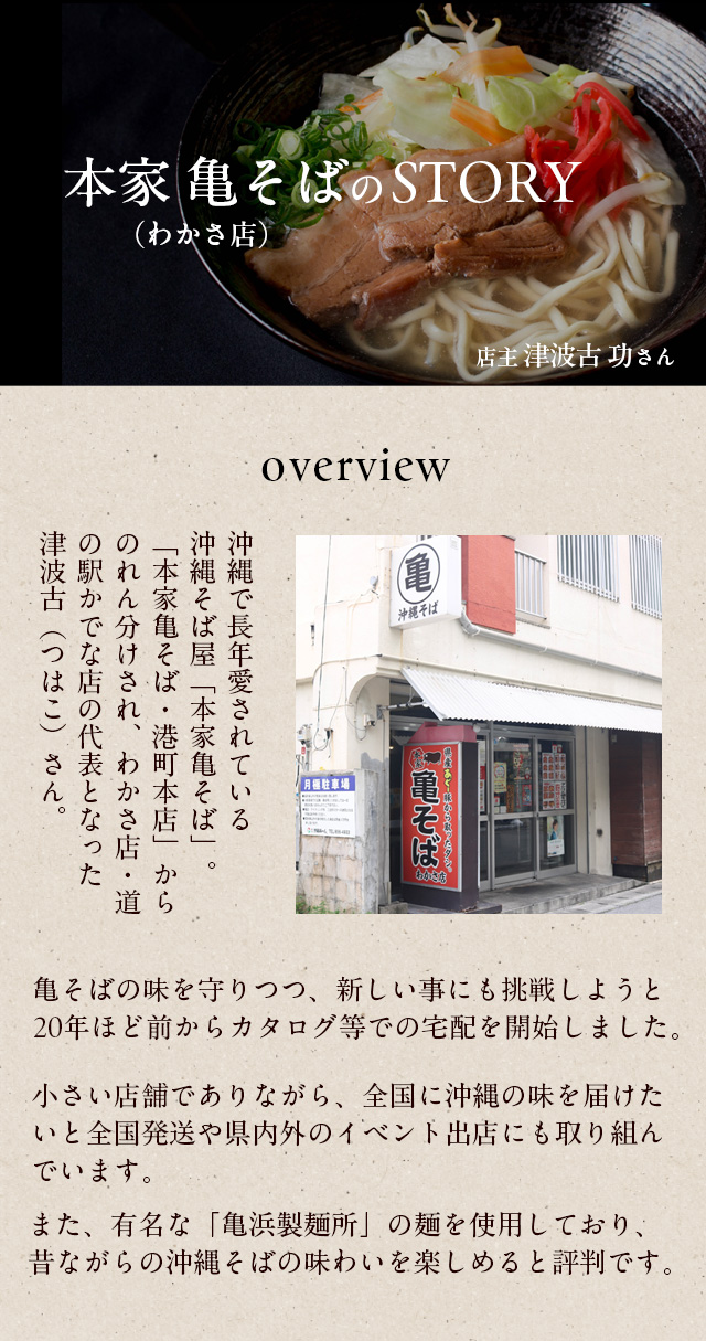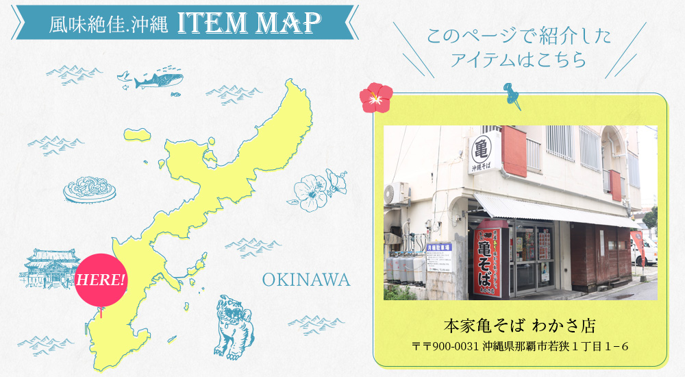 | 製造者/出荷元 | 有限会社ザバレスエンタープライズ(本家亀そば わかさ店) 沖縄県那覇市若狭1-1-6 |