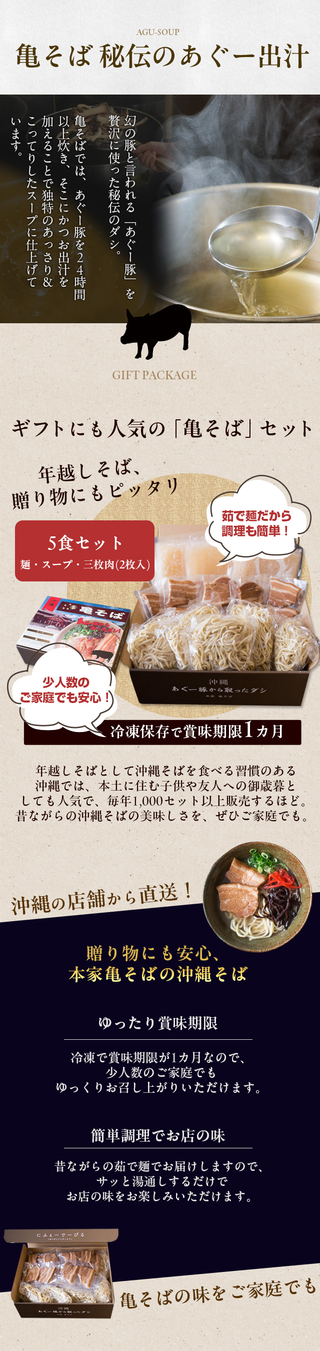 | 内容量 | 麺約140g×5袋 、スープ約270g×5袋、三枚肉2枚入×5袋 |
