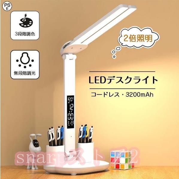 デスクライト led 学習机 おしゃれ コードレス 目に優しい ダブルランプ 電気スタンド 充電式 調光調色 学習用 作業 寝室 読書 勉強机 ペン立て付き 折り畳み