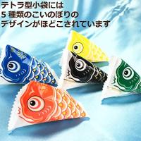 カラフルな5種類のこいのぼりがプリントされた小袋にあられが約10粒入っています。 たっぷり約46個入りなので、お配りやイベント等で活躍します。 小袋のデザインはランダム封入の為、全種類入っているとは限りません。