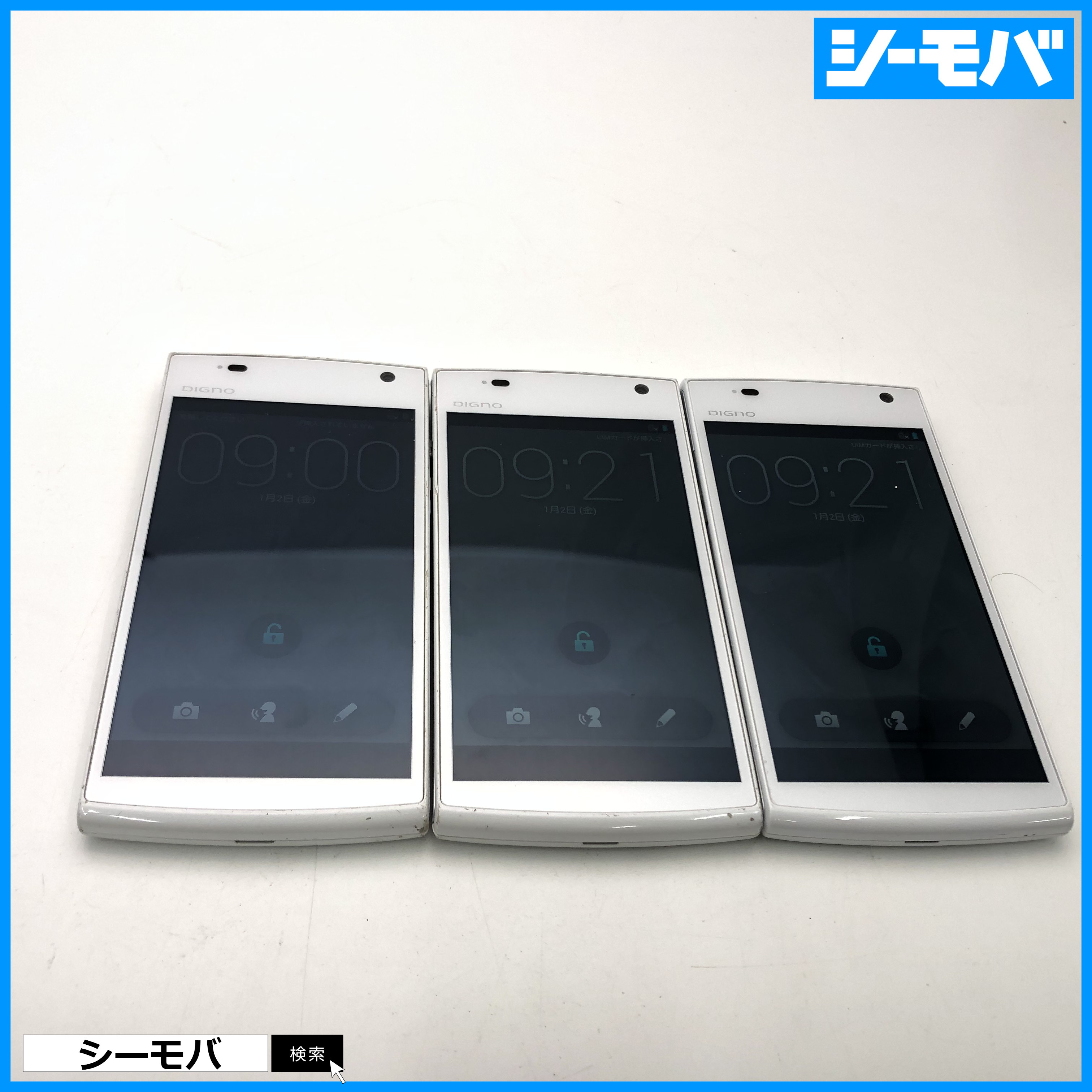 3台セット スマホ DIGNO S KYL21 au ホワイト 中古 android ネットワーク利用制限○ RUUN17049