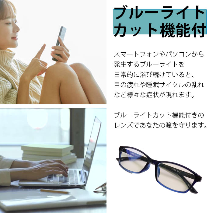 | 備考 | ●本製品は視力補正用のメガネです。 ●運転時や歩行時は事故などのおそれがありますのでご使用をお控えください。 ●使用中に不快感や視力異常を感じましたらご使用をお控えください。 ●PC環境・光の具合により、色や素材のイメージが写真と異なる場合がございます。 |