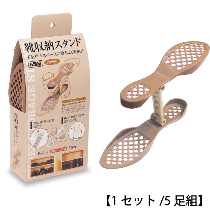 靴収納スタンド 1セット/5足組 男女兼用・下駄箱収納・玄関収納・シューズラック・シューズボックス・収納雑貨・靴箱 スリッパ、パンプス、ミュール