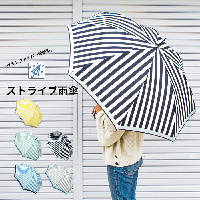 傘 レディース 長傘 雨傘 おしゃれ ジャンプ ストライプ柄 裾配色 20-2213 アンブレラ 丈夫 さびにくい グラスファイバー骨 梅雨 レイン