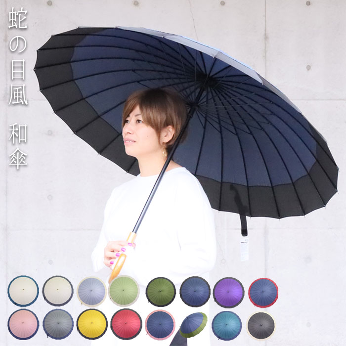 | 新色!!24本骨傘 蛇の目風 和傘 背中まですっぽり入る、使いやすい大きめサイズ。24本骨で、強風や大雨にも強く丈夫です。しっかり握れてグラつかない大きめの持ち手。オシャレで上品な傘で雨の日もウキウキ♪プレゼント・ギフト・贈り物にも |