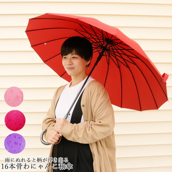 傘 レディース 長傘 ジャンプ 16本骨 雨に濡れるとわにゃんこが浮き出る わにゃんこ JK46 和傘 雨傘 和風傘 かさ アンブレラ