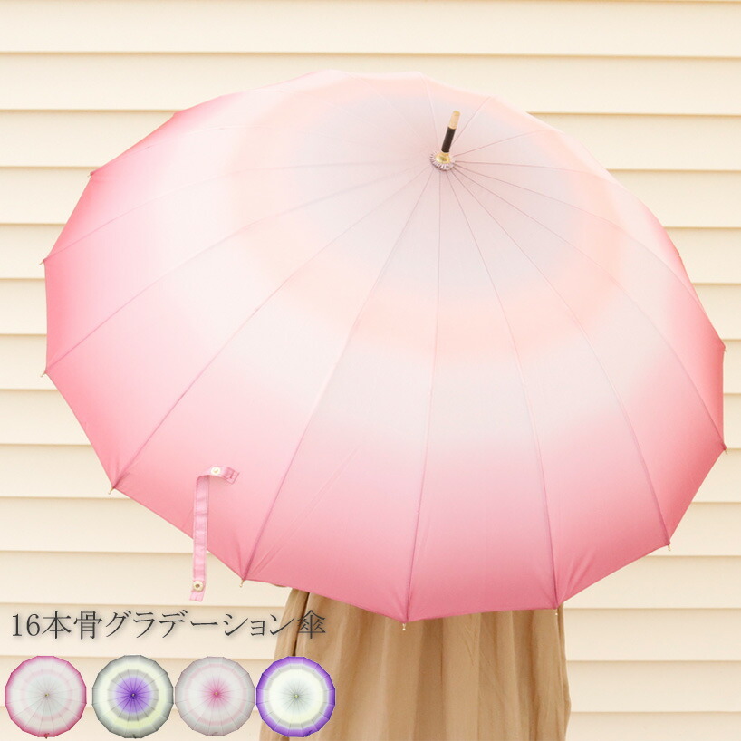 傘 レディース 長傘 ジャンプ 16本骨 和傘 グラデーション 霞かすみ JK17 かさ アンブレラ レイングッズ