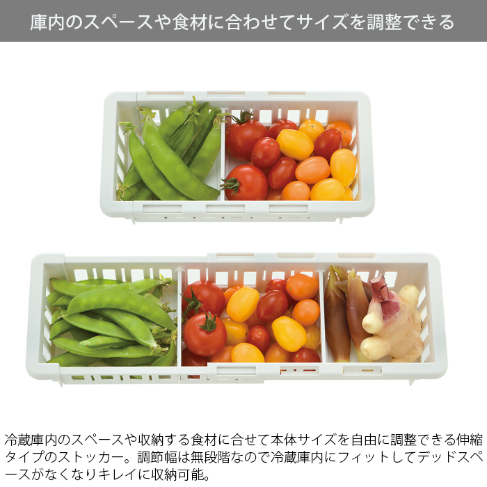 | 冷蔵庫のスペースや入れる食材に合わせて幅を調整できる |