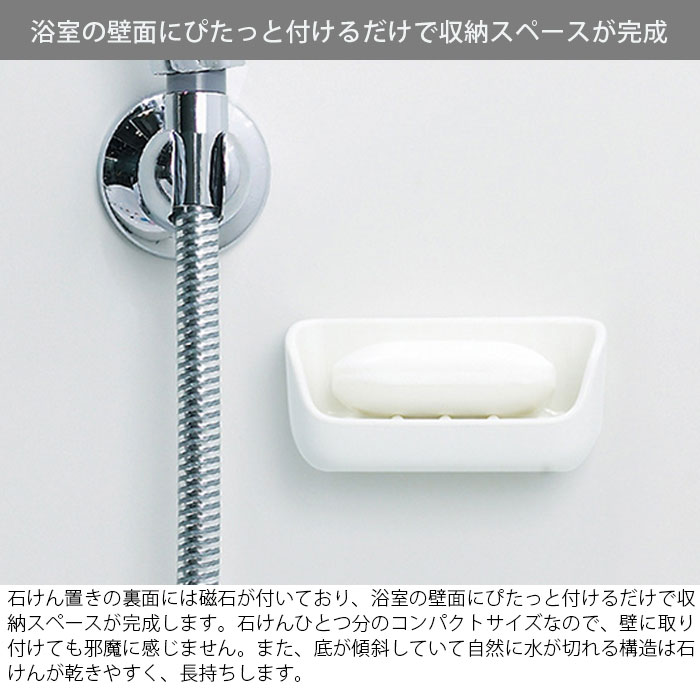 | 浴室の壁面に、磁石で簡単に取り付けができる石けん置き |