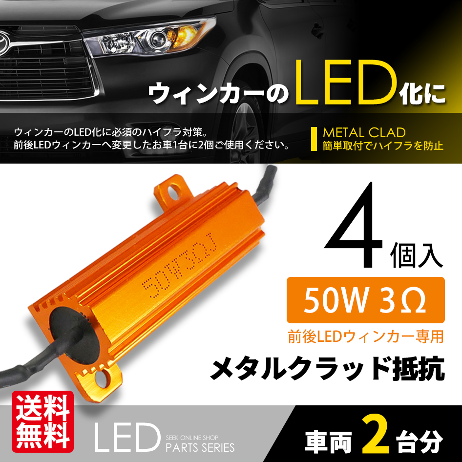 ハイフラ防止に メタルクラッド抵抗 50W 3Ω 車両2台分 4個セット LEDウインカーに