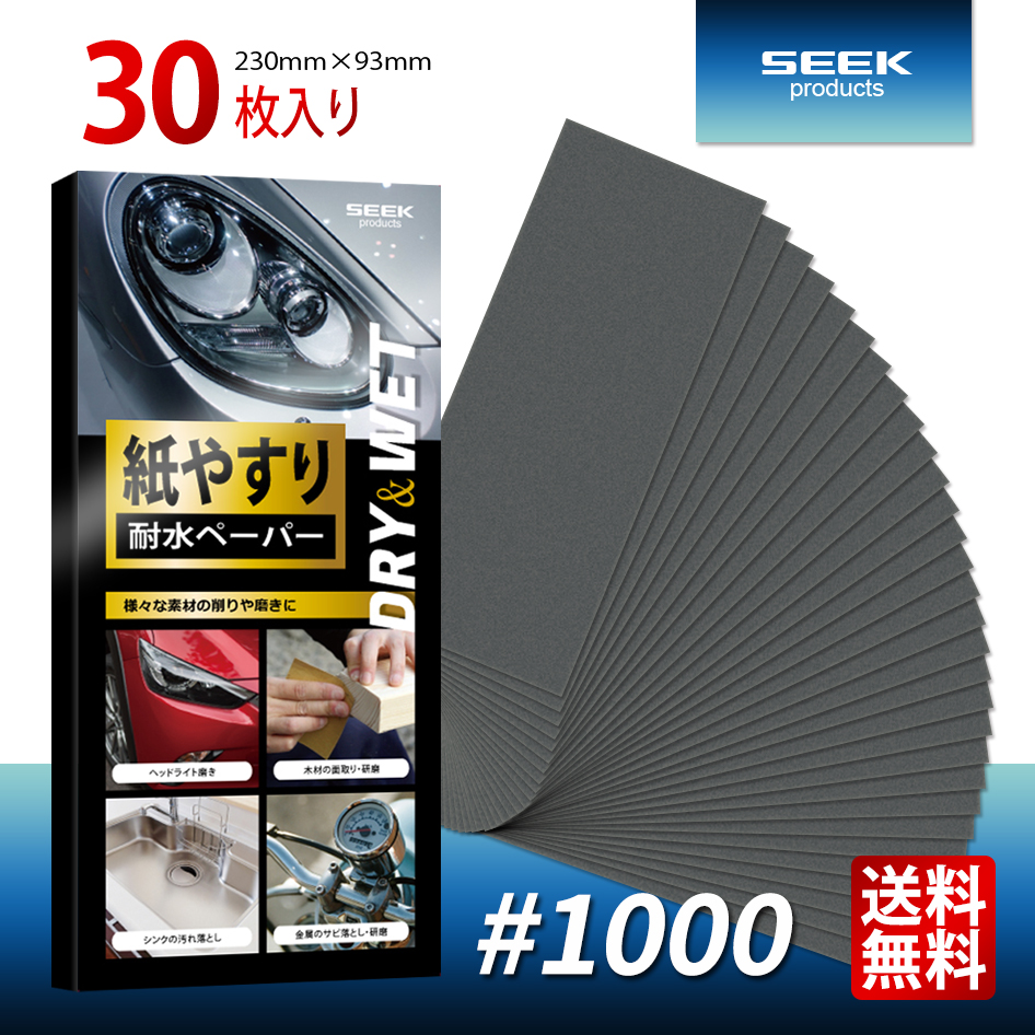 SEEK products 耐水ペーパー #1000 30枚入り 極細目 サンドペーパー 紙やすり 金属 木工 プラスチック ヘッドライト磨き サビ落とし 補修