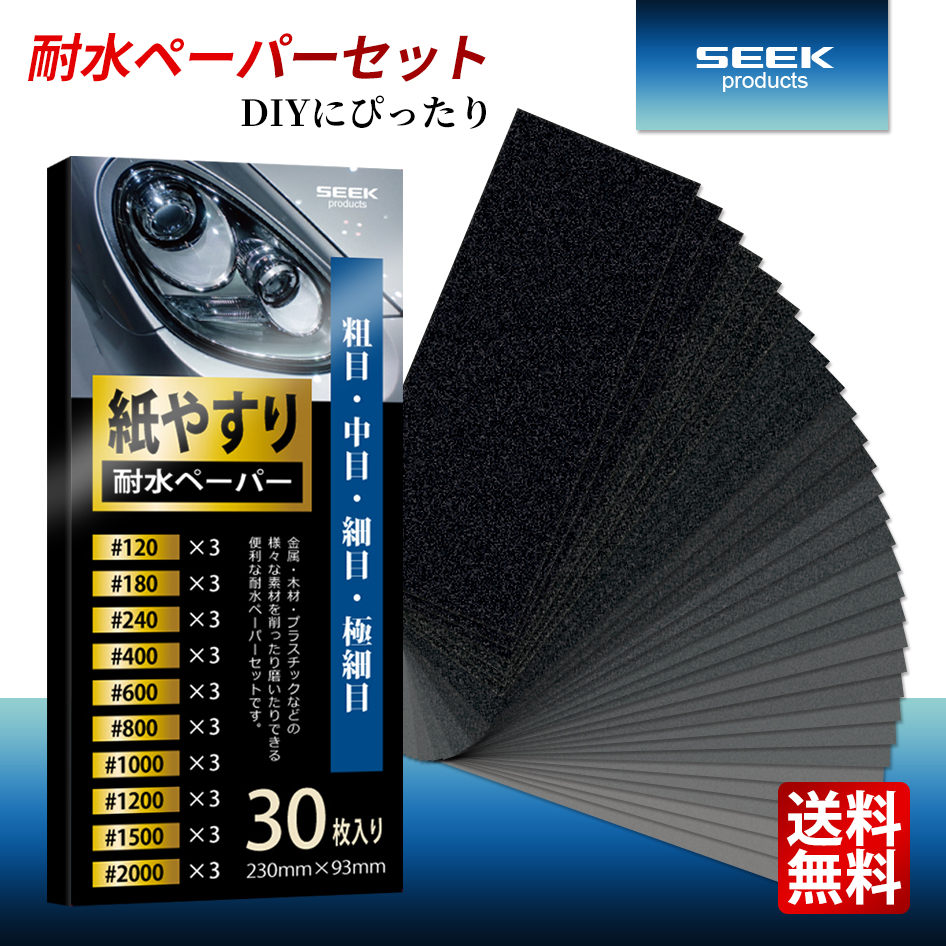 ■SEEK products 耐水ペーパーセット 10種類 30枚 #120-2000 粗目 中目 細目 極細目 サンドペーパー 紙やすり■