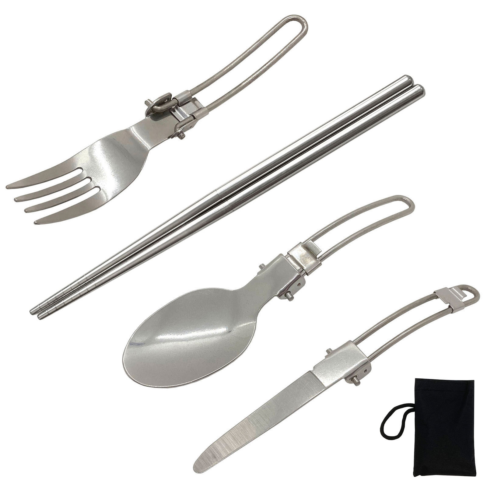 コンパクトに収納できるので、持ち運びに便利です。 高硬度で高温や摩擦に強いステンレス製です。 スプーンサイズ:160×40mm、ナイフサイズ:165×12mm、フォークサイズ:160×12mm、箸サイズ:18.2cm(9.4cm)、重量: 100g 、梱包サイズ:12×7cm、【材質】ステンレス、生産国:中国 ※持ち手も熱くなりますので、熱い物にご使用の際は十分ご注意下さい。また、本製品は火に当てないで下さい。洗う際はスポンジなどで優しく洗って下さい。箸はねじ式での取り付け取り外しです。