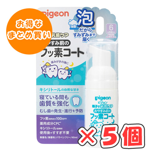 ピジョン おやすみ前のフッ素コート キシリトールの自然な甘さ 40ml × 5個 /6ヵ月頃〜/歯が生え始める頃から/