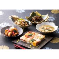 ●内容:なみはや寿司(鯖・海老・サーモン・穴子・鯛・昆布・カニ・大根酢〆・高菜×各2、玉子・玉子焼き(ごはん無し)×各1)・湯葉と長州鶏の和風あん(150g)・長州鶏湯葉唐揚げと彩り野菜の黒酢あん(150g)×各1、九種の具材の田舎おから煮(150g)・巨粒大豆と湯葉ひじき煮(150g)×各2