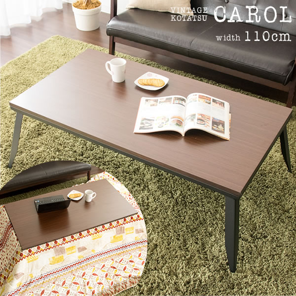 落ち着きのあるブラウンの天板とスタイリッシュなスチール脚のデザインが特徴のヴィンテージ風こたつ『CAROL(キャロル)』。