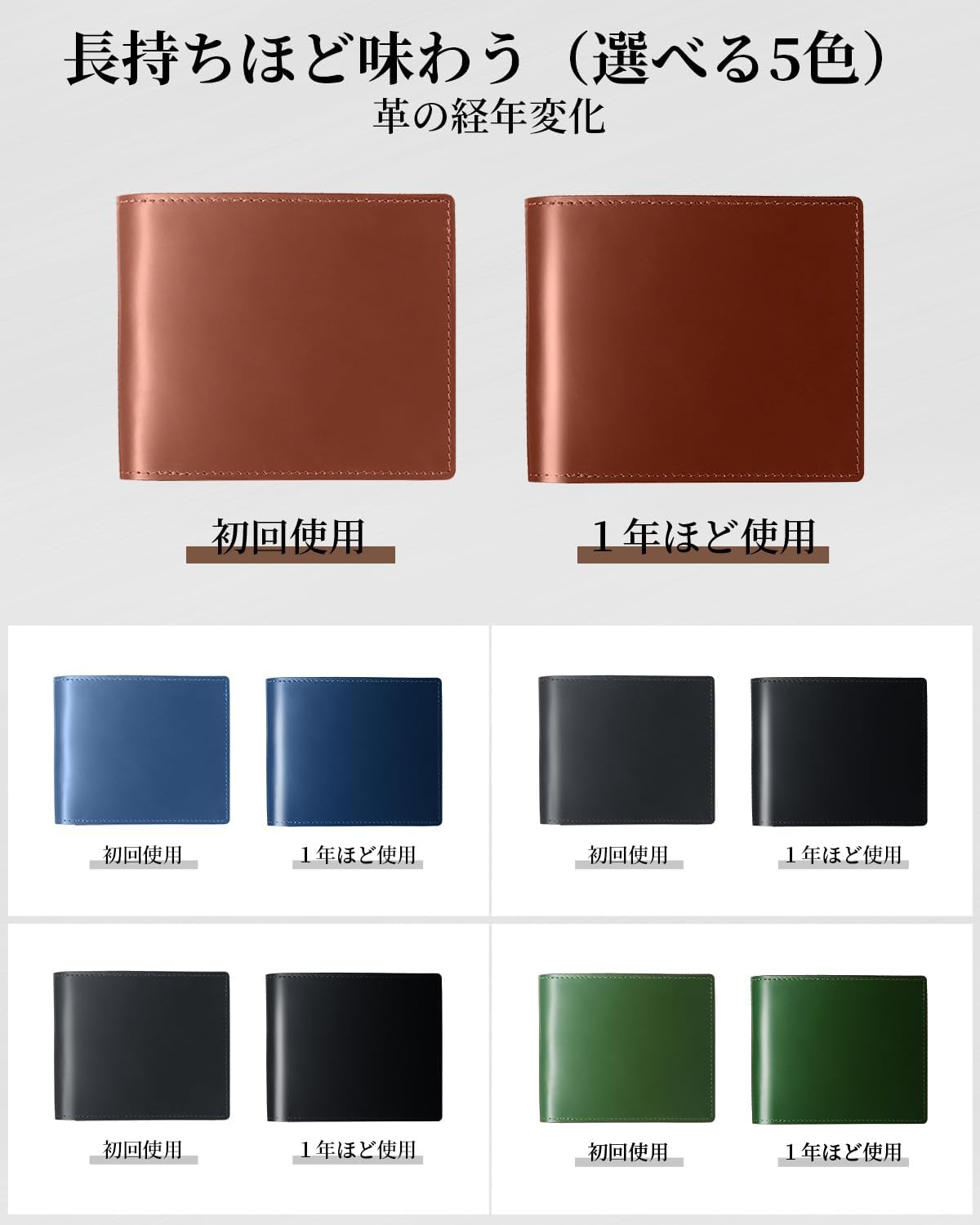 【世界最高のイタリアンレザー本革財布】 世界屈指の技術を誇るタンナーの「イタリアンレザー」を使用したメンズ財布。イタリアレザーは主に牛革を使用していて、植物性タンニンで鞣す伝統的なバケッタ製法で作られている。手作業で作られた革は、色むらやシミなどによって一つひとつが独特の表情を持ち、長く使うほどその魅力が増していきます。また、財布の革にはオイルがしっかりと浸透しているため、光沢があり、滑らかな手触りです。