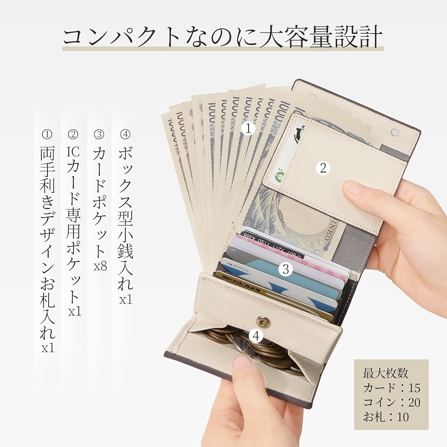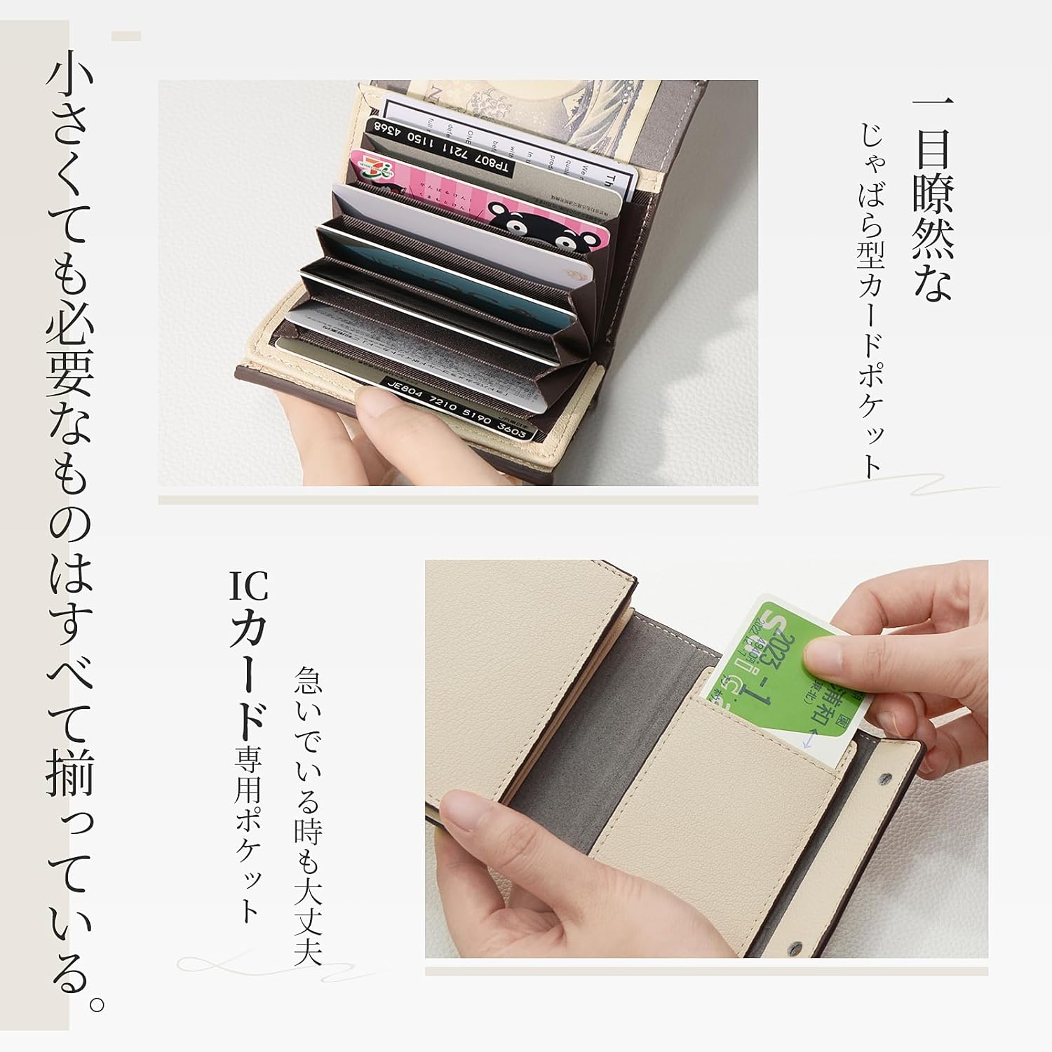 財布 レディース 2つ折り コンパクト 本革 じゃばら ボックス型小銭入れ カード入れ多い 小さい ミニ財布 大容量 箱状 左利き 右利き