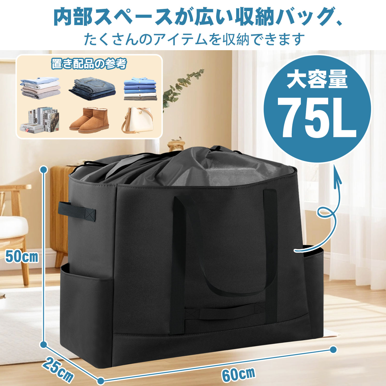 【折り畳み式・とても便利】折り畳み式の大容量バッグが、使わないときは折りたたんでコンパクトに収納可能です。家にいる間、布団や衣類を入れて押入れに置いておくのも、旅行時のサブバッグでお持ちの際も、車に積んでおいてもかさ張りません。