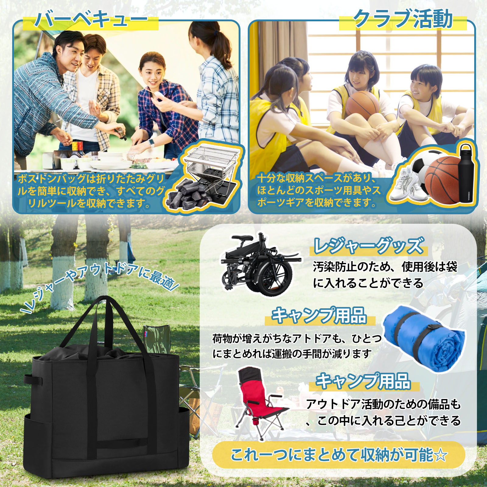 [DSDCDJ] ボストンバッグ トートバッグ 大容量 持ち手付 巾着タイプ エコバッグ キャンプ バッグ スポーツ アウトドア ランドリーバッグ 引っ越しバッグ