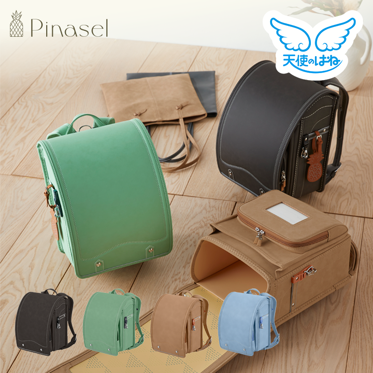 パイナップルの葉を主原料にした植物由来のレザーを使った「パイナセル」。温かみのある素材感とカラーリングが、ナチュラルなデザインにぴったり。「背中Wクッション」や「せみね」など軽く背負える機能も搭載し、お子さまの6年間をやさしくサポートしてくれるランドセルです。