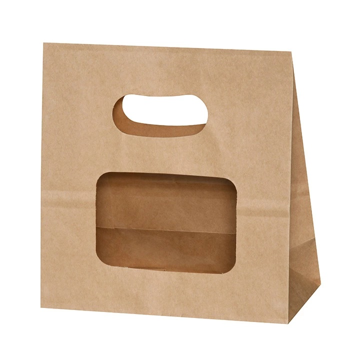 窓付き紙袋 ウィンドウイーグリップ 茶無地 160×70×165mm (50枚入)