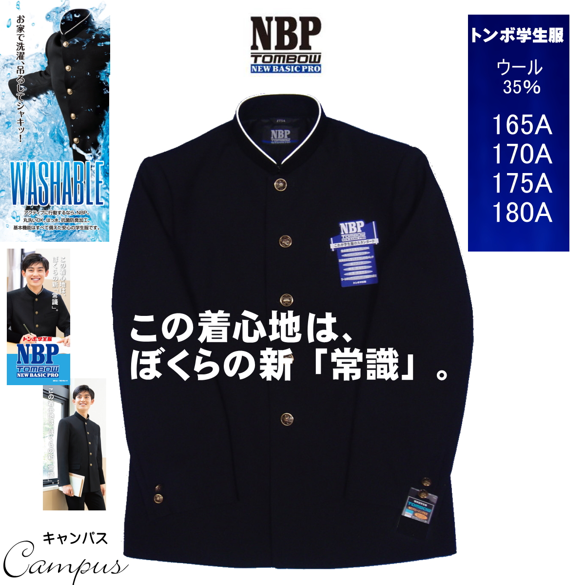 学生服 学ラン トンボ TOMBOW 165A〜180A NBP 14718-93 ウール35%ポリエステル65% ボーイズ ブラック