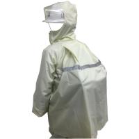 取り外し可能な動いて、まわるフードは、頭の動きにフードが付いてきますので視界の確保がとてもスムーズです。フード前方のクリアメガネは前方左右も見やすく自転車通学用レインコートとして安全に利用できます。