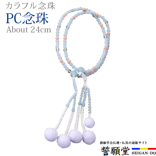 PC念珠 コンビネーション カルセドニ―3個+サンゴ 8.0寸カラフルな玉の組み合わせで、明るい印象に仕上げました。